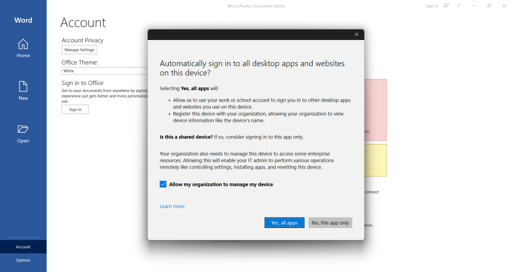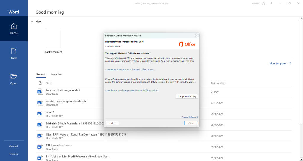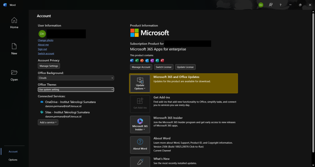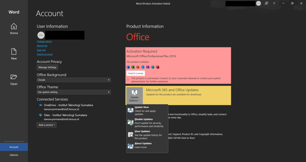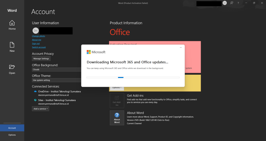 Jika lisensi masih belum berubah, silahkan close semua aplikasi Microsoft dan buka kembali aplikasinya / restart perangkat.