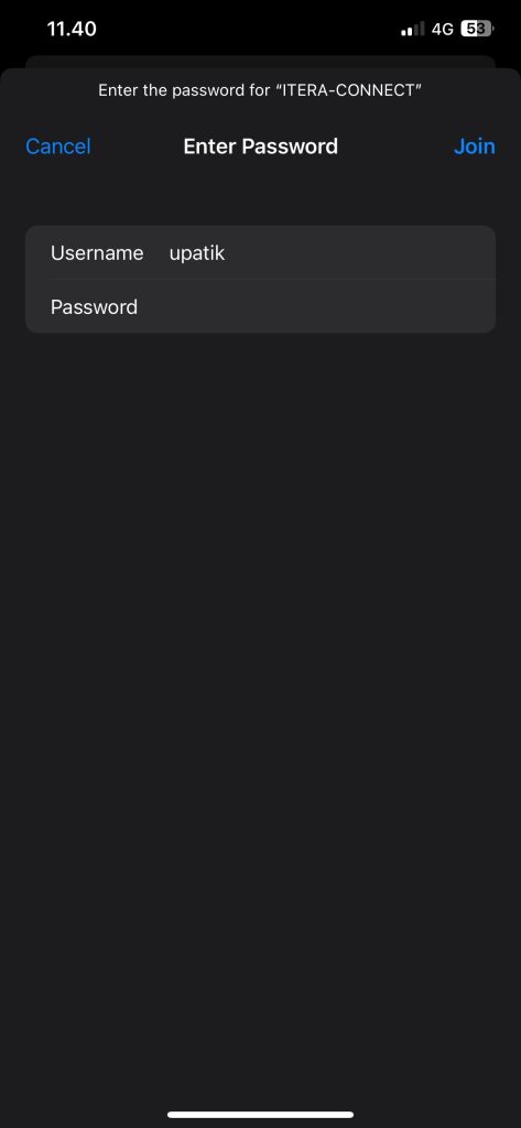 1. Pilih jaringan ITERA@CONNECT pada perangkat iOS.
