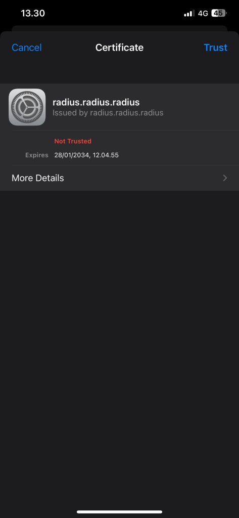 3. Berikut adalah tampilan jika sudah berhasil memasukan Username dan Password, kemudian klik Trust pada Certificate.