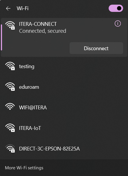 3. Jika sudah berhasil jaringan akan terhubung ke ITERA@CONNECT.
