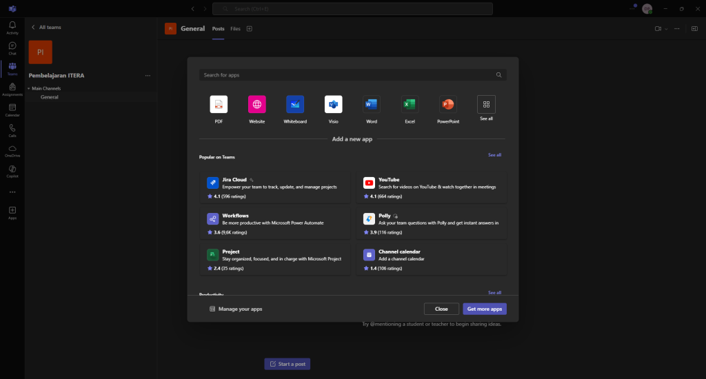 beberapa fitur yang dapat kita gunakan dalam Teams atau kelas yang sudah kita buat :